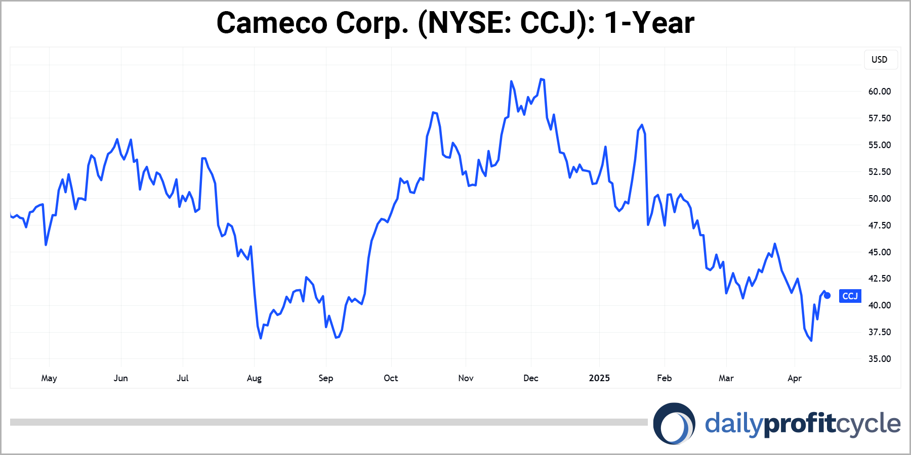 Similar to Cameco, the company’s shares are currently trading slightly above their 52-week low.